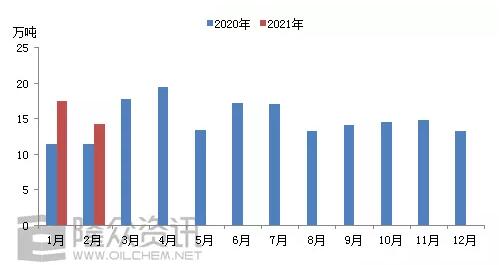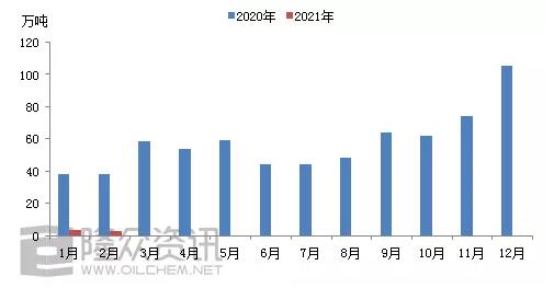 2020-2021年再生紙漿月度進(jìn)口量