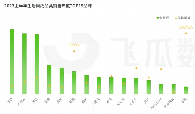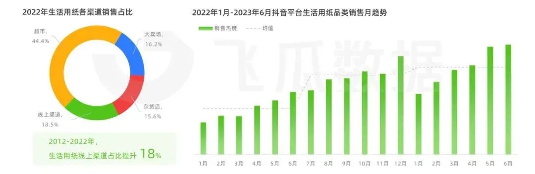 在各大電商平臺(tái)中,抖音電商表現(xiàn)出強(qiáng)勁增勢(shì),2023上半年生活用紙的品類(lèi)銷(xiāo)售熱度較去年同期增長(zhǎng)75.4%。